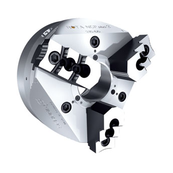 雄克ROTA NCR-A 带有一个中心卡盘活塞,其内部有三个相互间隔 120° 的摆动体。ROTA NCR-A每个摆动体均连接两个基爪。这样保证在六个触点之间工件定心,这些触点可成对调整。由于夹紧力方向朝向卡盘中心,因此实现了定心性能,无需再调整工件尺寸。